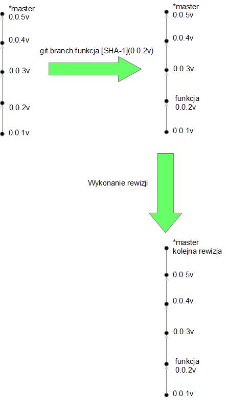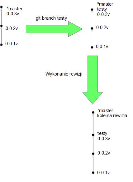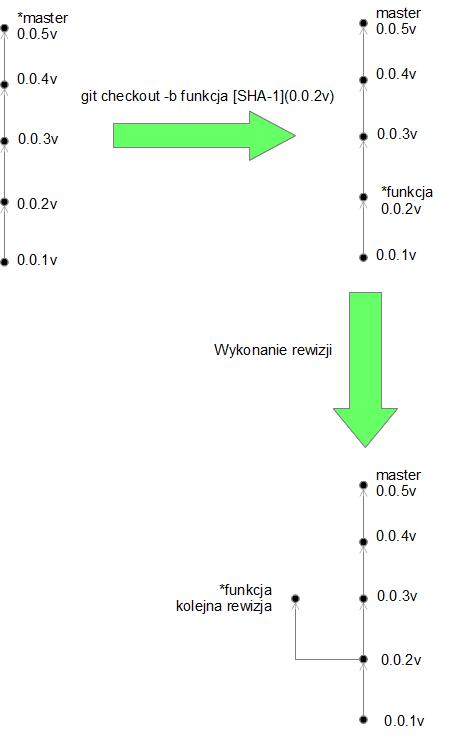 Utworzenie gałęzi do wybranej rewizji realizujemy poleceniem: