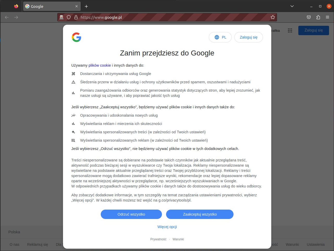 Podczas wykonywania skryptu powinniśmy na chwilę zobaczyć okno przeglądarki z załadowaną stroną wyszukiwarki „google„.