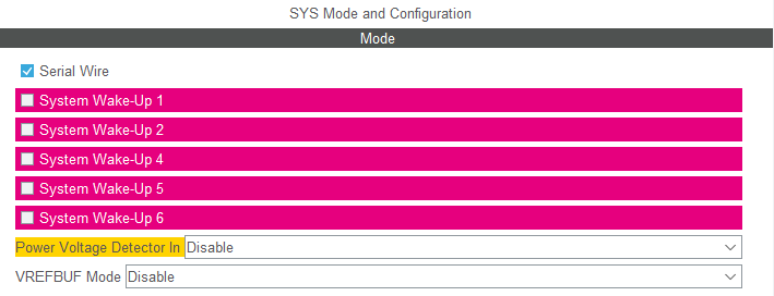 - Interfejs SWD, można go uruchomić poprzez zaznaczenie opcji Serial Wire.