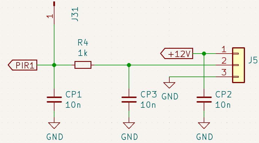 - Brak zewnętrznych rezystorów pull-down na liniach sygnałowych z czujników PIR, które utrzymywałyby stan niski. W celu rozwiązania tego problemu w obecnej wersji projektu użyłem pull-down umieszczonych wewnątrz procesora.