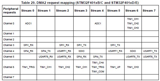 Informację o tym, którego użyć strumienia DMA, oraz kanału także znajdziesz w Reference Manual [1]: