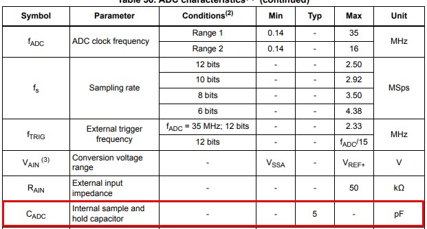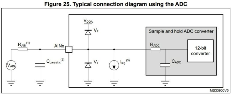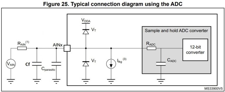 We wpisie przedstawię zadanie kondensatora filtrującego na wejściu analogowym procesora STM32G0, wykonam analizę doboru kondensatora, obliczając błąd, jaki on wprowadza oraz wspomnę, gdzie należy go umieszczać na PCB.