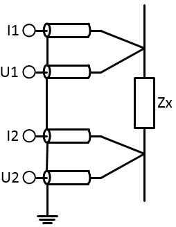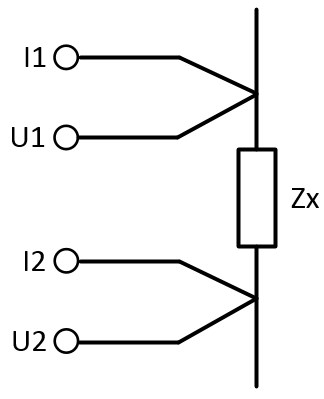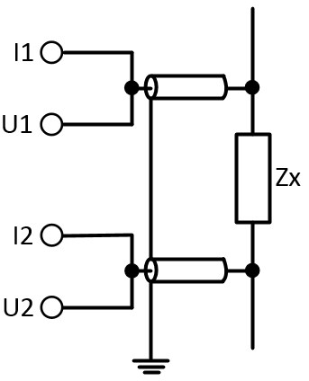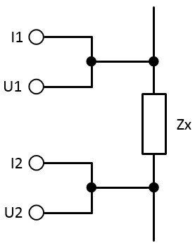 Poprzez wstrzykiwanie prądu i pomiar spadku napięcia przy badanym komponencie, układ ten znacznie redukuje wpływ rezystancji przewodów pomiarowych.