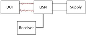 Ostatnią grupą testów przewodzonych są pomiary emisji urządzenia (Conducted Emission), które są wykonywane w komorze odbiciowej. Pomiary informują o częstotliwościach, jakie są emitowane przez badane urządzenie np. do obwodów zasilających. Podczas testów emisji przewodzonej badane urządzenie zasilane jest poprzez LISN (Line Impedance Stabilization Network). LISN pełni dwie rolę, filtru dolnoprzepustowego oraz elementu stabilizującego impedancję linii na poziomie 50Ω. Pomiar za pomocą specjalnego miernika (Receiver). Pomiary podawany jest w postaci mocy lub amplitud prądów i napięć.